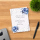 Für eine elegante und romantische Hochzeit. Ein durchsichtiger, heller Hintergrund mit blauen Blumen, Rose und Spitzen. Personalisieren Sie Ihre Namen und Details und fügen Sie diese hinzu.