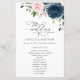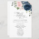 Fügen Sie Ihrer Hochzeitsfeier eine persönliche Touch mit diesen stilvollen und unvergesslichen Party hinzu! Das Design ist mit Marineblau- und Rosa-Blume und Grün auf weißem Hintergrund gestaltet.