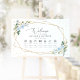 Fügen Sie Ihrer Hochzeitsfeier eine persönliche Touch mit diesen stilvollen und unvergesslichen Party hinzu! Das Design ist in Blau-Weiß-Blume, Grün, Goldkonfetti und Goldrahmen auf weißem Hintergrund gehalten.