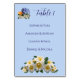 Diese Namenskarte entspricht dem Hochzeitsdesign der Alanah Anne Blume. Die Bouquets bestehen aus blauen Hydrangea und Iris, pfirsichfarbenen Rose und orangefarbenen Pappeln mit einer Sprinklerei aus weißen Rosen zwischen Eukalpyptus-Blätter. Sehen Sie sich die Blume Bouquet Designs auf www.rosiesgarden.co.uk, um Ihre Hochzeit rund um dieses Design.