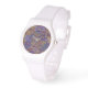 Blaue Blüten gegen das Muster der Blättertarnung Armbanduhr