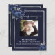 Ein elegantes zweiseitiges Programm. Ein dunkelblauer Hintergrund, ein silbernes Imitat, blaue Blumen und Platz für ein Foto. Personalisieren und hinzufügen von Namen, Daten und Text.