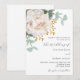 Ein schick weißer Hintergrund. Weiße Blumen, Blume aus Pinien und grüne Eukalyptus-Blätter in Aquarelltönen, Gewürze, Grünpflanzen und Imitate, goldene Zierpflanzen. Personalisieren und fügen Sie Ihre Namen und Hochzeitsdetails.