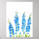 Blaue Delphinium florale Aquarell elegant rustikal Poster