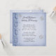 Reizende blaue Winterhochzeitskristalleinladung, erfolgt in einer quadratischen Form, mit elegantem hellblauem Damastblickhintergrund. Grafiken einer blauen Blumengrenze, auf der links Seite wird mit hübschen Schneeflocken punktiert. Die Rückseite der Einladung hat Grafiken eines reizenden Verzierungs-Sets auf dem gleichen blauen Damasthintergrund, als die Front. Personifizieren Sie den Text, die Front und die Rückseite, zum Anzug Ihre Wintermärchenlandhochzeit. Zusammenpassende Produkte verfügbar.