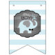 Blaue und weiße Drucke mit Tafelrahmen und blauer Elefant mit BogenKrawatte Babyparty-Flaggenfahne für Doppeljungen.