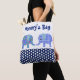 Tragen Sie es als Windelbeutel, oder als zusätzliche Tote-Tasche für das gesamte Baby-Equipment - oder Ihre eigene! Zwei blaue Elefanten, einer mit niedlichen Blume, der andere in blauem Gingham, stehen sich über einem Feld weißer Polka-Punkte auf marineblau gegenüber. Der Text ist ein Vorlagenobjekt und kann nach Belieben geändert werden.