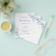 Bitte beachten Sie, dass diese Einladung auf Flyer Papier und sehr dünn ist. Umschläge sind nicht enthalten. Für dickere Einladungen (gleiche Gestaltung) besuchen Sie bitte unseren Shop. Ein weißer Hintergrund, mit dustigen blauen Eukalyptus-Stielen dekoriert, mit Sprigs. Personalisieren Sie Ihre Namen und die Details. Zurück: staubiger blauer Hintergrund.