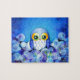 Blaue Eule auf dem Löwenzahn-Gebiet