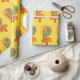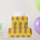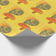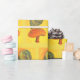 Malerei einer niedlichen flockigen Eule, die auf einem großen orange Pilz mit einem gelben Hintergrund sitzt, macht dieses Spaßverpackungspapier.