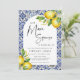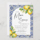 Feiern Sie mit der 50. Geburtstagseinladung des Mediterranen Blauen Tiles Lemons einen Meilenstein in der Art. Dieses Design mit klassischen blauen Fliesenmustern und lebendigen Zitronen verleiht Ihrem Party ein festliches mediterranes Ambiente. Ideal für Ansammlungen im Sommer oder für Feiern im Freien, Set für eine fröhliche und elegante Veranstaltung, die ein bemerkenswertes 50. Jahr ehrt.