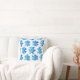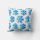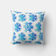 Blaues Schneeflocken-Kissen mit einem lustigen Urlaubsmuster, das aus einer Aquarellabbilderung verschiedener Formen von frostigen Schneeflocken entstanden ist. Dieses lustige Wintermuster ist ideal für Weihnachtsdekorationen und für Leute, die Schnee Liebe.