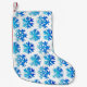 Blaue Schneeflocken Weihnachten Strumpf mit einem lustigen Urlaubsmuster geschaffen aus einer Aquarellbild von verschiedenen Formen frostigen Schneeflocken. Dieses lustige Wintermuster ist ideal für Weihnachtsdekorationen und für Leute, die Schnee Liebe.