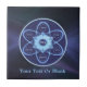 Eine modernistische Pessach-Seder-Platte auf einem Fraktal-Hintergrund. "Pesach" und die Namen jedes besonderen Lebensmittels, das auf einer Siebplatte gefunden wird, sind in hebräischem Text aufgeführt. Fügen Sie Ihren eigenen zusätzlichen Text hinzu.