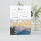 Ein winterlich elegantes Aquarellblau-Gebirge Pinien Bäume Hochzeitsdesign. Ein farbenprächtiges Design aus Kiefernwäldern, das die rustikalen, wasserfarbenen blauen Berge vereint. Ein elegantes botanisches Design für jeden, der Kiefernwald und Wintermotive Liebe. Ein elegantes Winter rustikale Pinienbäume Thema Hochzeit RSVP Karte Design mit modernen Elementen. Auch die passenden Hochzeitseinladungen und andere Schreibwaren sind verfügbar.
