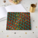 Briefmarke mit quadratisch-blauen Bildern und Kratzern mit rotem Gitter oder so etwas wie Wand. Mit dunklen Strichen manchmal "zerstört" durch Effekte, und was scheint, Augen in Quadraten.