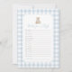 Laden Sie Freunde und Familie ein, ihre Wünsche für das Baby auf dieser eleganten blauen Gingham-Teddybär-Babyshower-Spielkarte zu notieren.