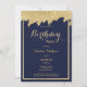 Elegante schicke moderne marineblau und goldene Glitzer Pinselstriche Birthday Party. Diese schicke, moderne marineblaue Geburtstagsparty mit individueller Party Einladung ist perfekt für jedes elegante und raffinierte Glam-Mädchen. Dieses Design eignet sich perfekt für ein trendiges und stilvolles Party-Event. Passen Sie dieses Design mit Ihren eigenen Nachrichten und personalisierten Informationen an. Alle Designs sind gedruckt.