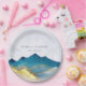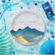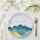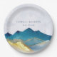Moderne Vintage Elegante Hochzeit / Brautparty Papier Teller Vorlage - Blue Green und Imitate Gold Foil Wasserfarben Berge Landschaft. Diese Designs können für Ihren Besondere Anlass Personalisiert sein und wären perfekt für Ihre Hochzeit, Brautparty, Engagement Party, Geburtstagsparty und viele weitere Besondere Anlässe.