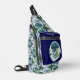 Bleibe unterwegs stilvoll mit dieser angesagten Slingtasche, die ein einzigartiges blaues und grünes Quallenmuster aufweist. Die Vordertasche, in einer ergänzenden dunkelblauen Farbe, kann mit Ihrem Namen personalisiert werden. Machen Sie mit dieser auffälligen Tasche eine Aussage, perfekt, um Ihre Essentials mit einer Touch personalisierten Flairs zu tragen.