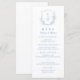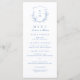 Mit Monogramm Initialen gerahmt von elegantem Wappen und Hand illustrierte botanische Blätter, Menüdetails in elegantem Drehbuch und klassischen Schriftart, einfach und luxuriös. Große blaue und weiße Speisekarte für moderne klassische Hochzeit, einfache formelle Hochzeit, elegante botanische Gartenhochzeit. Sehen Sie sich alle passenden Stücke in der Sammlung an.