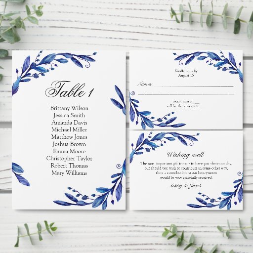 Blaue Hochzeit vorbehalten Schild. Navy-Blumenkart