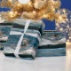 Blaue Holzmauer. Abstrakter Hintergrund und Geschenkpapier
