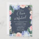Blaue Hydrangeas Pastellrosa Rosen Hochzeit in Einladung