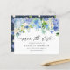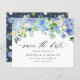 Blaue Hydrangeas und Elfenbein-Rose Save the Date