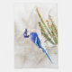 Eine blaue Jay in einem Kiefernbaum im Winter