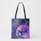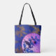 Hübsche orientalische Blume mit beleuchtetem Sonnenschirm mit Blume und Pfau. In den Farben Blau, Gold, Rosa und lila.