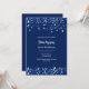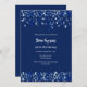 Modernes, elegantes und einladendes Hotel. Ein marineblauer blauer Hintergrund mit blauen Konfetti. Personalisieren und fügen Sie einen Namen und Details. Weißer Text.