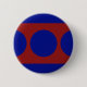 Dieses gewagte geometrische Muster weist einen blauen Kreis in der Mitte und zwei blaue Halbkreise an den Kanten eines roten Hintergrunds auf.