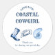 Mit unserem Cowgirl Junggeselinnen-Abschied Classic Rundaufkleber feiern Sie die Braut-to-Bräune! Der Charme des Ozeans trifft auf den Wilden Westen mit Küsten- und Western-Motiven. Ideal für einen tropischen Strand oder einen Western Girl Last Rodeo Bash. Ob sie ein Küstenmädchen ist oder Lieben Blue Coastal Vibes, dieses Dankeschön-Aufkleber hat alles. Mit Blue Western Yeehaw Stiefeln und Muschelmotiven ist es ideal für jedes Blue Aesthetic Fun Party. Von New Orleans über Nashville, Miami bis Charleston und sogar Texas und Tennessee erobert dieser klassische Rundaufkleber das Wesen von Spaß und Abenteuer. Mit diesem einzigartigen und lebendigen Aufkleber macht sie ihren letzten Flug unvergesslich!