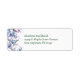 Ein Etikett mit hübschen Blume auf einem Weinstock in Blau- und Violetttönen.