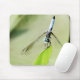 Blaue Libelle auf grünem Blatt Mousepad