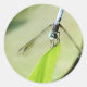 Blaue Libelle auf grünem Blatt Runder Aufkleber