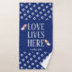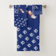 Modernes, stylisches, königsblaues CHRISTLICHES SCRIPTURE Badetuch-Set, entworfen mit LIEBE LIVES HIER in weißer Typografie und ZOLLBARER Schriftzeichen-Referenz, die Sie durch Hinzufügen Ihres (Familiennamen) personalisieren können. 1 Johannes 4:16 sagt: "Gott ist Liebe, und wer in der Liebe lebt, hält sich an Gott, und Gott an ihm." Das Design beinhaltet eine weiße Serifentypografie mit optionaler Doppelherz-Grafik, die Sie auf Wunsch löschen können. Passende Elemente und andere Farben verfügbar.