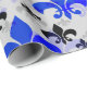 Blau-Schwarz-Lilie auf der Vorderseite reflektiert weißes Hintergrundmuster-Papier. #FleurDeLisDesign #ElegantSymbol #RoyalInspiration #ClassicFloral #FrenchStyleDecor #RegalMotif #VintageDesign #TimelessBlüte #HeritageSymbol #DecorativeArt #LuxuryPattern #HistoricalDesign #Emblematic #FloralSymbolism #ArtisticElegance #CulturalInspiration