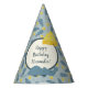 Diese PapierPartyhüte sind für das Werfen eines Party für Ihren Lieblingsmäuseliebhaber perfekt. Sie kennzeichnen ein Muster der blauen Mäuse des Schiefers und der gelben Keile des Schweizer Käses gegen einen blassen hellblauen Hintergrund mit Ihrer eigenen personalisierten Mitteilung.