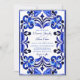 Blaue, mediterrane Fliesen in einer Hochzeit Einladung