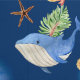 Unter dem Thema Meer. Ein marineblauer Hintergrund und ein Muster mit Walen, Schildkröten und Fischen