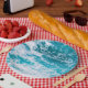 Das Abstürzen von blauen Ozeanwellen, die natürliche Muster erzeugen. Der Sommerstrand liegt in Hawaii, im Mittelmeer und an anderen Badeorten. Perfektes Design oder Geschenk für einen besondere Anlass.