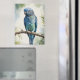 Dieses zarte Aquarellbild besticht durch einen zauberhaften blauen Parkettboden auf einem Eukalyptuszweig, umgeben von sanften grünen Blätter. Die sanften Pinselstriche und die beruhigende Farbpalette schaffen eine friedliche und naturlich inspirierte Szene, ideal für Vogelliebhaber und botanische Kunstliebhaber.