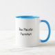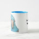 Foto meines blauen männlichen pazifischen parrotlet auf einer Tasse. Auf die gegenüberliegende Seite geschrieben der Speziesname. Niedlich!