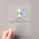 Blaue Perlen und Prosecco-Brautparty Acryleinladungen