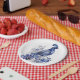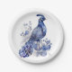Blaue Pfaue im Delft-Stil mit Blume Pappteller