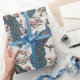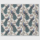 Dieses farbenprächtige blaue Pfau & Magnolia Wildlife Wrapping Paper zeigt ein in Chinoiserie-Stil gezeichnet Muster von hand blauen und aquamarinen Pfauen, die auf den Magnolienbaumzweigen in Blüte auf elegantem Elfenbeinhintergrund stehen.