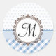 Blaue Punkt, Karo und Streifen mit Monogramm Runder Aufkleber
