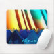 Ein hellblau und gelb/orange-farbenes 3D-Fraktal mit mehrfachen, meist blauen Pyramiden vor einem glänzenden, Prismenähnlichen Hintergrund. Fügen Sie Ihren eigenen Text hinzu.